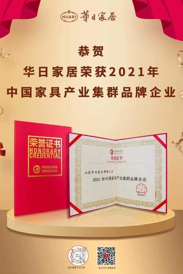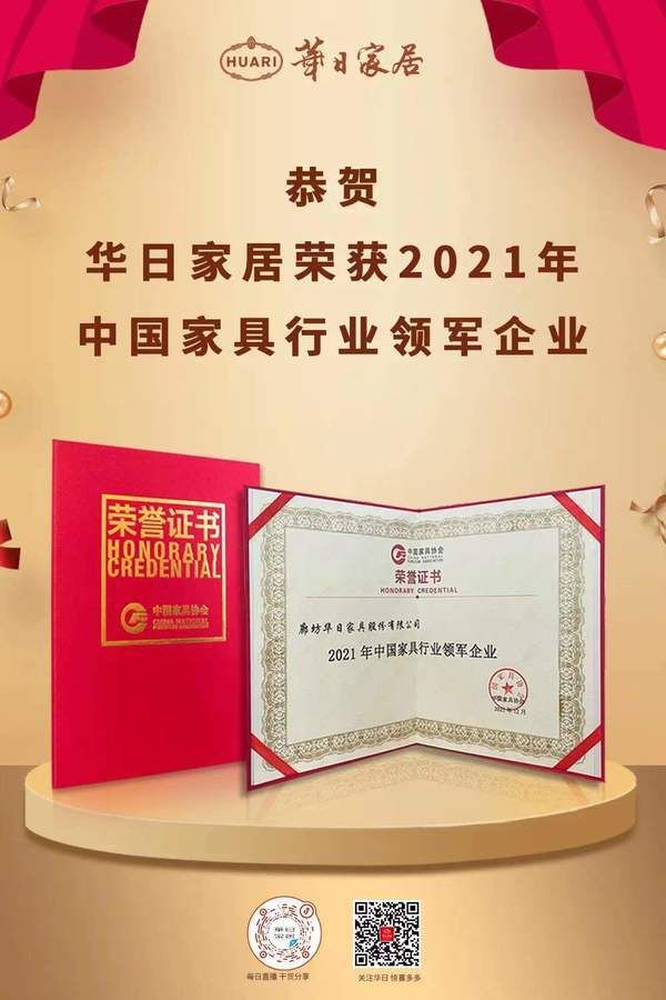 定制快讯|华日家居荣获“2021年中国家具行业领军企业”等2项殊荣