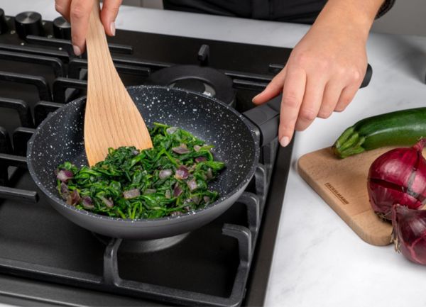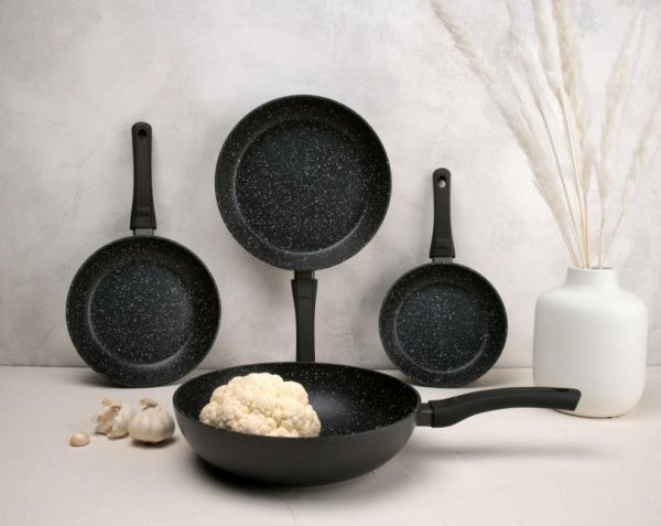 特别是中厨离不开煎炒烹炸的,所以对锅具的需求是最大的,但是因为传统锅具容易生锈,炒菜容易粘锅,所以不粘锅也顺势成为了厨具市场的主流。所以法克曼针对这些问题进行了研究和创新,生产了最新产品法克曼繁星锅具系列,繁星不粘锅整体设计简单时尚,不仅拥有高颜值,而且整体采用了铸铝材质和加厚不锈钢锅底,同时第一次采用胶木手柄和玻璃锅盖,使整个产品设计具有美感。