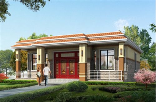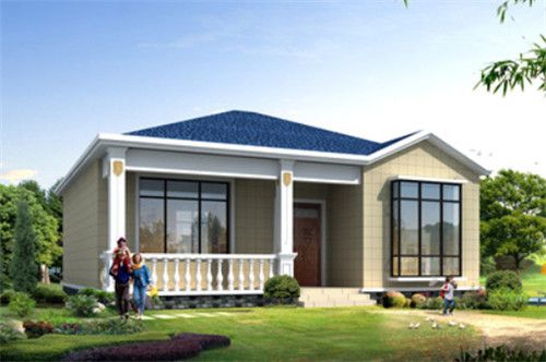 这款房屋造价也在10万元左右,外墙采用谈黄色的瓷砖进行装饰,再配上蓝色的屋顶,整体看起来非常的清新亮眼。门前走廊既方便宝宝玩耍,又方便业主晾晒衣服。
