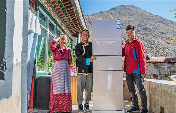 位于珠峰脚下的西藏日喀则定日县消费者收到京东家电专卖店送来的大冰箱