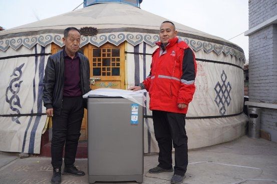 京东家电专卖店将洗衣机送到内蒙古鄂尔多斯牧民的蒙古包
