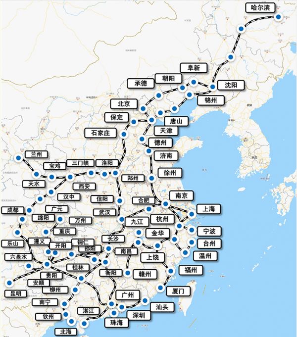 △“科顺回家号”高铁冠名专列运行覆盖图