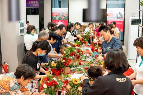 向日葵活泼明亮,非洲菊灿烂热烈。这一天,山东禹城全友专卖店内花团锦簇,专卖店特别为大家安排了插花环节,提前准备好了新鲜的花束和藤编花篮,并邀请专业花艺师来到现场进行教学,在娇艳花朵的映衬下,大家的脸上幸福的微笑格外美丽。