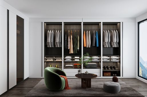 曼居优雅的细节设计也不容忽视。金属材质的门板芯板巧妙搭配,增加了空间的层次,体现出融合现代艺术的当代审美。亮光肌理纹路PET的引入,让人开启每一个收纳空间的同时,开启一场优雅的视觉简悦。