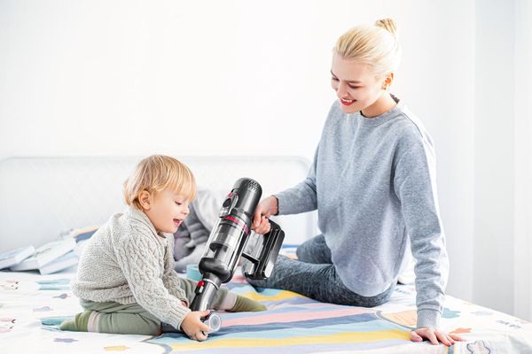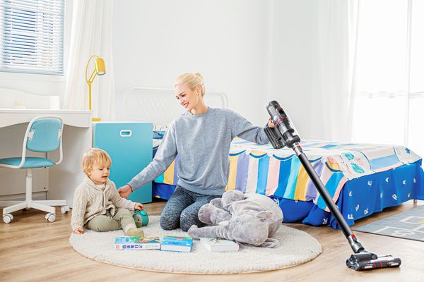 宝宝好奇的欲望强盛,家具底部、窗帘后、墙角等是他们经常探索的区域,因此务必要重视各种角落的打扫。小狗T12 Plus Rinse擦地吸尘器随机搭配双滚电动地刷、软羽刷、电动除螨刷、照明长扁吸等6款全场景刷头,可以快速有效地对家具底部、低矮空间以及卫生死角进行清洁。其中双滚电动地刷适用于清洁地板、地垫、地面缝隙、榻榻米或短毛地毯;电动除螨刷可清洁床垫、沙发等处的深层污垢、尘螨排泄物及过敏原;对于狭小角落和缝隙里留下的毛发灰尘,可以使用照明长扁吸和二合一宽嘴刷进行吸除,伸缩软管则可以吸除柜顶及窗帘等高处的毛发残留,保证家中干净无死角。