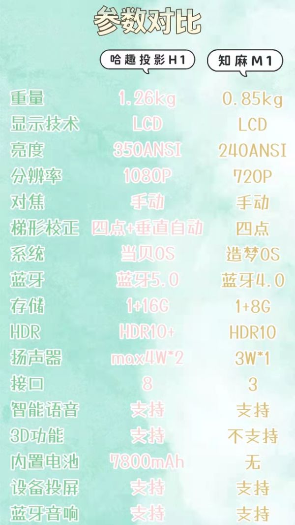 什么投影仪最适合女孩子?哈趣投影H1和知麻M1谁更好用?