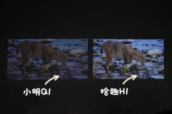 由于没有知麻M1的画面图,这里就用小明Q1举例。已知:哈趣投影H1的亮度350ANSI流明>小明Q1的亮度250ANSI流明>知麻M1的亮度240ANSI流明。得到结论:知麻M1的亮度比图中的小明Q1还要低。