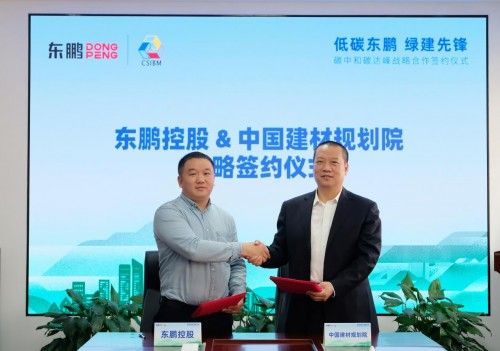 近日,广东东鹏控股股份有限公司(简称“东鹏控股”)与中国建筑材料工业规划研究院(简称“中国建材规划院”)签署“碳达峰”、“碳中和”战略合作协议。中国建材规划院党委书记、院长曾令荣,院长助理王晓芳,业务发展部主任刘伟,东鹏控股低碳发展委员会秘书长陈世清,东鹏集团品牌中心总经理苏荣,以及人民网、中国网、北京商报、乐居财经等多家媒体记者共同出席签约仪式。