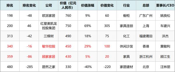 快讯 | 《2021胡润中国500强》发布 敏华、顾家排名下滑