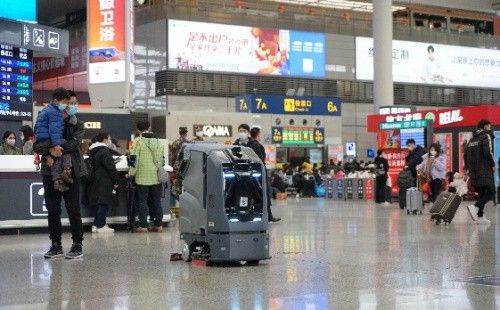春运首日卡赫AI智能清洁机器人亮相上海虹桥站,助力防疫抗疫