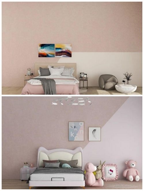卧室是一个让我们放松警惕,放松休憩的地方。美涂士天鹅绒艺术漆和轻粉色的撞色墙面,加上温润的木质地板,恬静淡然的气息油然而生。若是家里有小孩,可将艺术漆可与清新的草莓奶昔色一起搭配,不仅满足人们对色彩的一切想象,更是能引起孩子内心有趣的构想!不同艺术漆效果与网红色搭配,使原本优雅的家居环境更显别致,充满温馨舒适感。