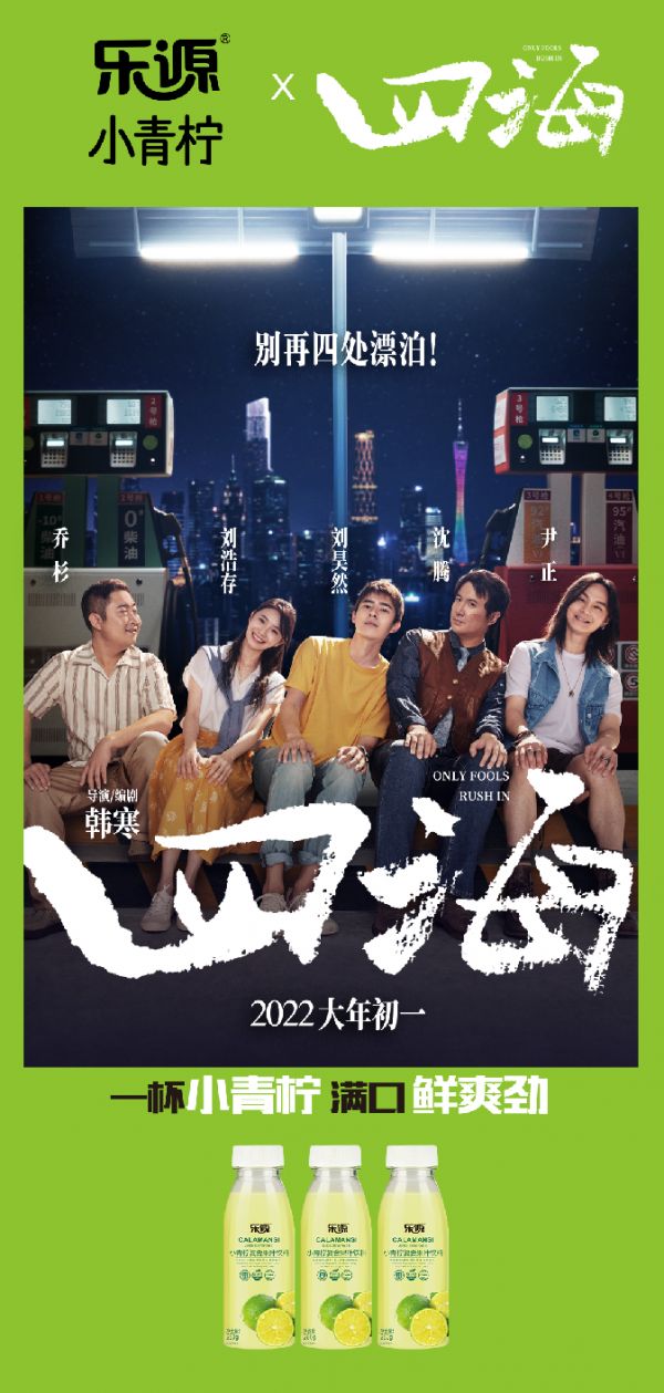 乐源小青柠携手电影《四海》,定档2022大年初一,开启一场风驰电掣的奇遇之旅。