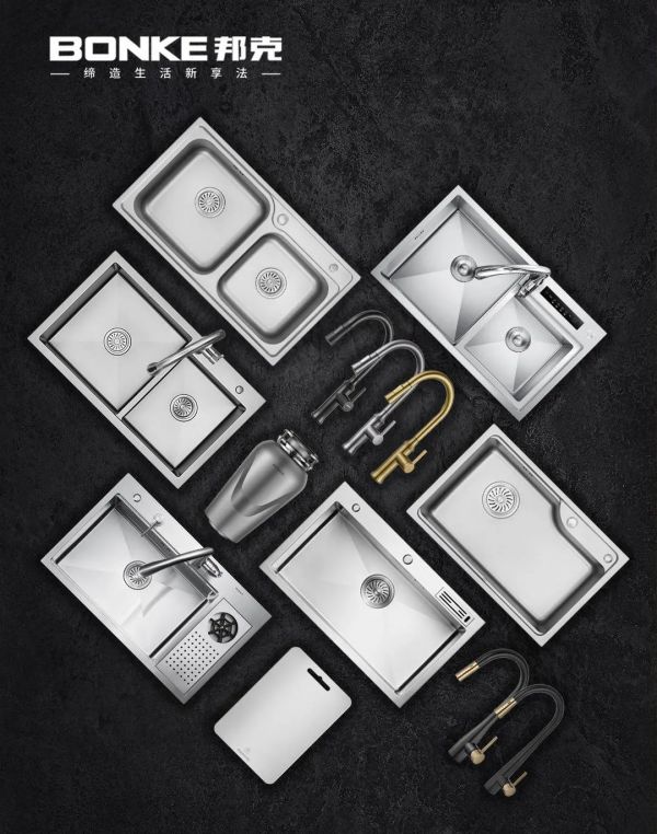 围绕现代厨房对烹饪和洗涤的需求,邦克推出了包括水易净系列水槽、梵拉智能触控龙头、水触媒智能水槽、洗杯器手工水槽、小蛮腰水龙头等一系列标准化、集成化智能厨卫五金产品。以颇具艺术气息的创意灵感为基点,将其特质融入产品中,营造别具一格的厨房氛围外;在五金选材与设计工艺上也是匠心独具,大大提高了橱柜的使用舒适度与耐用性,带给消费者独特的体验盛宴。