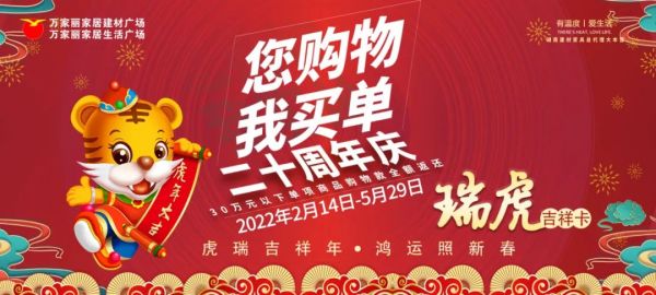 万家丽·丽万家,万家丽不改初心、诚信经营已陪伴大家走过二十个年头。感激新客户的信任,感恩老客户的支持。为答谢新老客户,万家丽家居建材广场&家居生活广场携手全场入驻品牌,用千万豪礼为您打造长达100天的家具建材“盛惠”。用百万免单坚持二十年如一日的,用真现金、真力度回馈消费者!