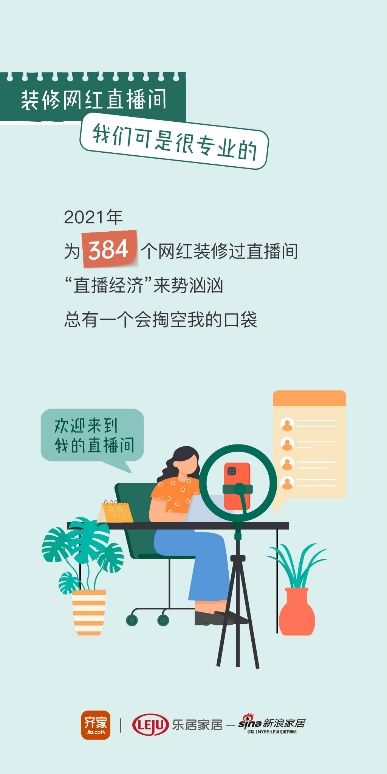 2021年可以说是短视频盛行、直播经济爆发的一年,催生人们对装修、生活方式的新思考,特殊的装修需求也不断被激发。直播经济作为“互联网+”的一种发展方式,具有互动性强、平台广泛、时空限制小等特点。直播经济基于各类平台,以移动端为主,其内容包括电商、体育、财经、教育、社交、音乐等各个能够产生经济效益的领域。