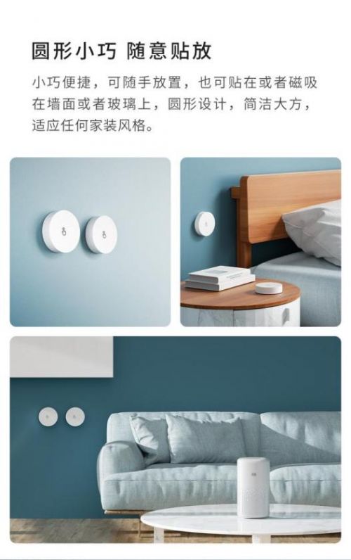 全新圆形小巧外观,三种按键动作升级智能遥控体验。无需布线接线,还可随意粘贴当做门铃或呼叫器使用。米家全屋智能的必备神器,为用户带来更加便捷的智能体验!