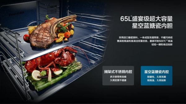 小空间,并不意味着小容量。老板蒸烤炸一体CQ922还拥有着65L容量的大容量搪瓷内胆,采用进口的搪瓷原料,和无缝焊接技术,更呵护健康的同时不藏污纳垢,兼具耐高温和易清洁双重优势,轻轻一抹即净,不管是日常一人用餐,还是周末多人聚餐都可以轻松满足,让你不管在忙碌的工作日还是舒适的周末休息时刻,都能拥有更加轻松和便捷的烹饪体验。