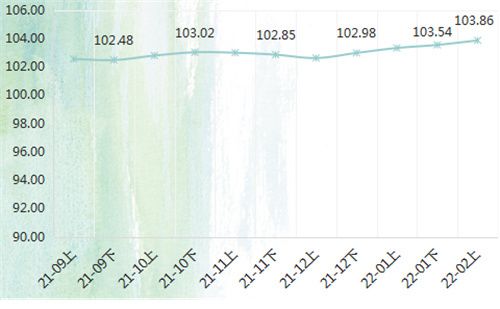 2022年2月上半月,实木家具价格指数迎来4连涨,收报103.86点,环比上涨0.32个点。春节过后,多数家具加工企业已开始复工复产,各类家具产品销售均以库存为主。