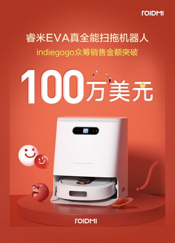 2月16日,睿米EVA真全能扫拖机器人在海外众筹平台Indiegogo众筹金额突破一百万美元,创下傲人纪录。