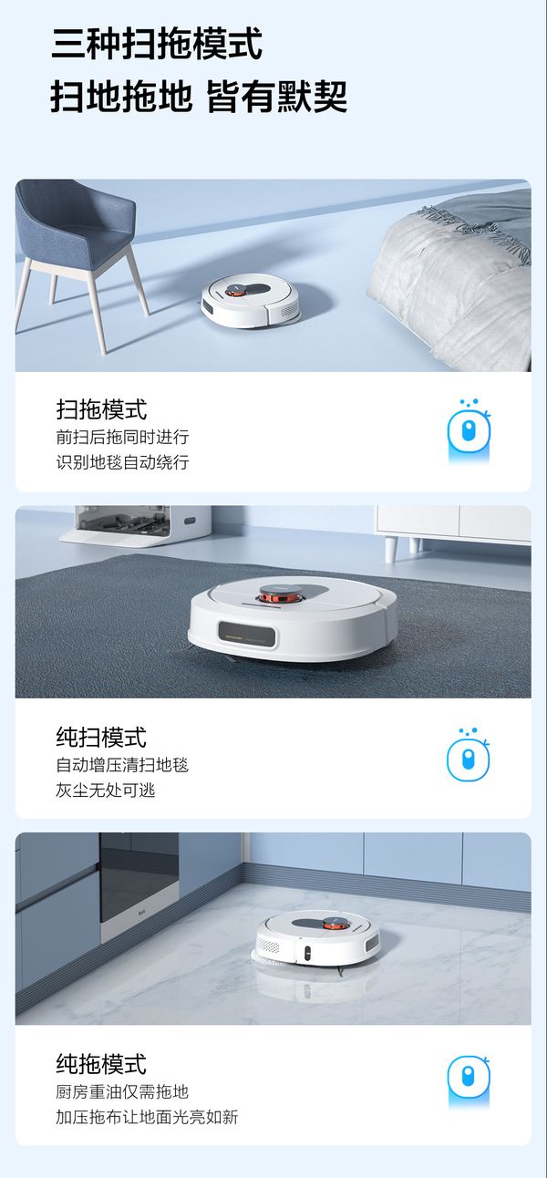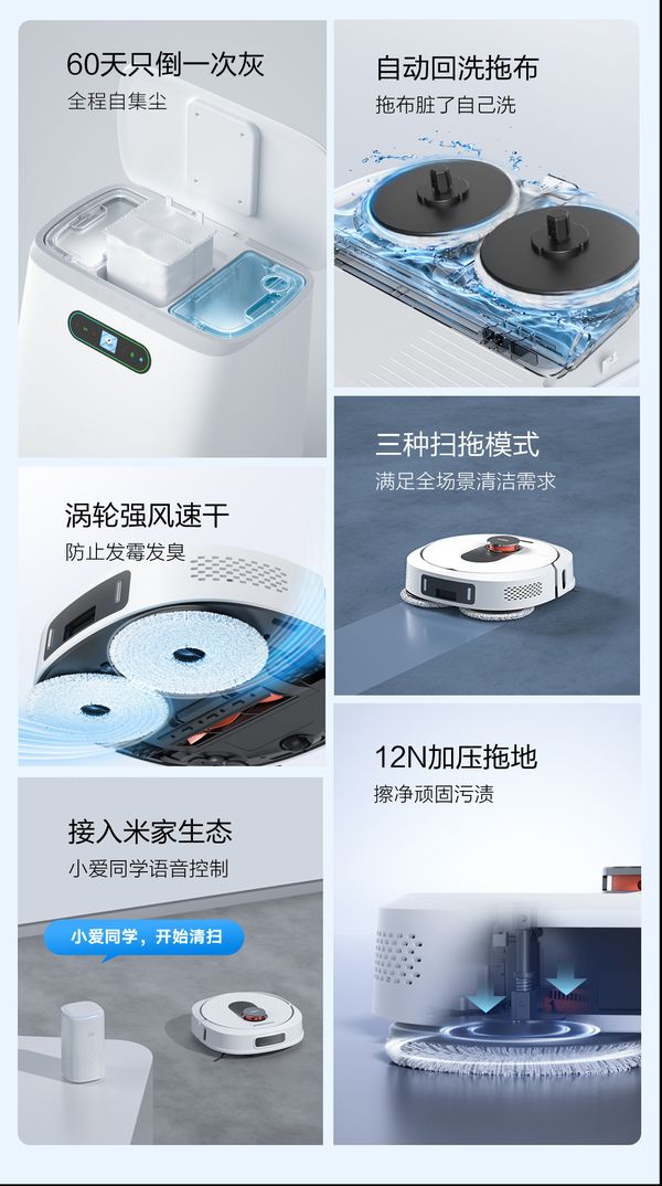 一直以来,睿米都想创造一个能够真正解放用户双手的扫拖机器人。EVA有全程自集尘和自动清洗拖布功能的整合,60天只倒1次灰,拖布脏了自己洗,这样用户就可以长时间省去倒垃圾和更换抹布的烦恼,生活更加便捷。此外,EVA还配备了4L大容量水箱,99%强效抑菌;99.9%抑菌尘袋,涡轮强速风干。EVA搭配了3种清洁模式,满足家庭全场景清洁需求。3200Pa大吸力、4寸180转/分钟高转速大拖布、12N加压仿生拖地,让灰尘污渍不见踪影。搭载了第4代LDS超感激光雷达,全场景避障脱困;20mm爬坡过坎,无惧家中门槛。连接米家APP,轻松为每个房间定制清洁模式,掌上清洁随心控;呼唤小爱同学,一句话安排清洁任务。总之,EVA可以让用户省时省心省力,真正做到解放双手。