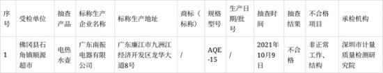 家电快讯|佛冈县工业公布2021年产品质量监督抽查结果:1批次电热水壶不合格