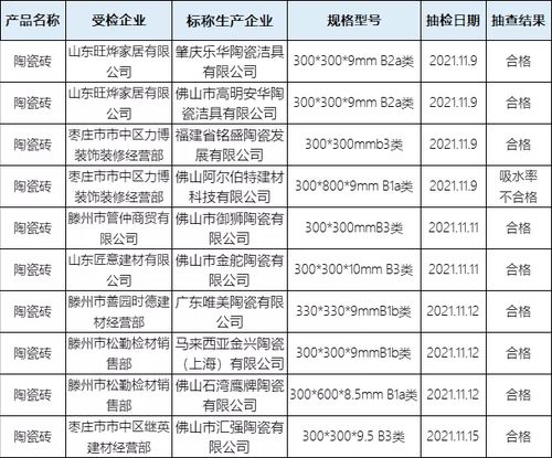 陶卫快讯|山东省枣庄市市场监管局抽查10批次陶瓷砖,1批次不合格