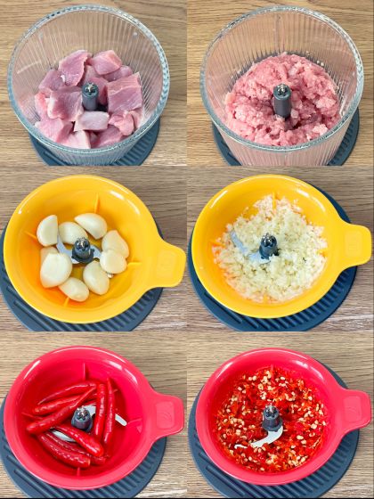 饺子的制作,放以前可是个大工程,不但要反复剁馅保证肉馅的鲜嫩弹牙,还要捣蒜泥,制作剁椒碎,做完这些我通常就已经不想动了。但现在不一样了,有了东菱百味佐料机,做肉馅的时候只需要将肉放进东菱百味佐料机的绞肉碗,等肉绞好后在肉馅中加入生抽、食盐、葱姜水就可以了,轻松又省力!不光是肉馅,蘸料也可以这样如法炮制,无论是蒜泥还是辣椒,放进佐料碗,之后的工作就交给东菱百味佐料机了,忙里偷闲刷刷视频都可以,下厨一点都不累,省力又高效!~