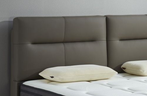 东宝床垫这款皮床外观清新,造型简洁,在现代卧室中让人眼前一亮。八个金属高床脚,拥有12公分的床底高度,简洁中带有一分轻奢感。