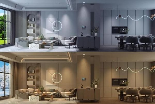AI无主灯极光欧若拉共包含智能调光筒、射灯、智能导轨球形灯、泛光灯等23款产品,1600万RGB色度, 2700-6000K色温区间,拥有百阶无极调光和精细深度调光,PWM信号控制,20kHZ 高频,无频闪现象。且具备AI机器学习、照明算法推荐优势,实现室内灯光的24h分时管理、分季管理、随声舞动、随影舞动、分组/分区控制等效果,具备简约美观、稳定安全的特性,支持断网可用。