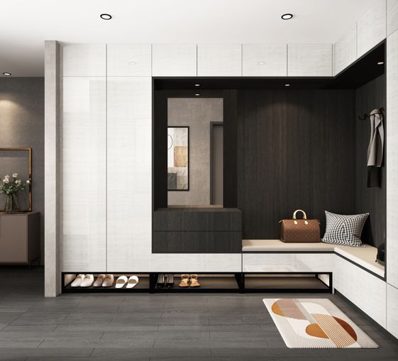 通过高贵典雅的醉花间II,不仅能看到现代家居应有的时尚轻奢气息,还能在细枝末节中感受到专属于中国人内敛的浪漫。醉花间II的门板由石纹和水波纹交织呼应,高光和纹路的结合,让门板的肌理凸显出高级的质感,山水石木的自然元素一直都是中式家居不能缺席的设计亮点。云母白和云影黑的中式古典配色,成为了家居环境中画龙点睛的精彩配色设计。玻璃和暖色灯带又凸显着家的现代主题,光影浮动间,在家里也能体验到大千山水世界的唯美与豁达。美学的表达没有固定模式,但却有浮于表面和深入眼底之分,要想达到高品质家居的层级,需要深入刻画的设计,充分利用空间的艺术、颜色的艺术、几何的艺术激发文化底蕴,展现高级的审美,营造出别样享受的意境,进而奠定高品质家居的基础调性!