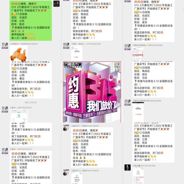 万嘉信木门不仅具有充足的生产保障,同时作为永武缙木门头部企业、雄安新区央企战略合作单位,拥有主动服务经销商的优秀客服能力,在本次活动中,万嘉信木门依旧发挥较强的客服主动服务能力,为经销商保驾护航。