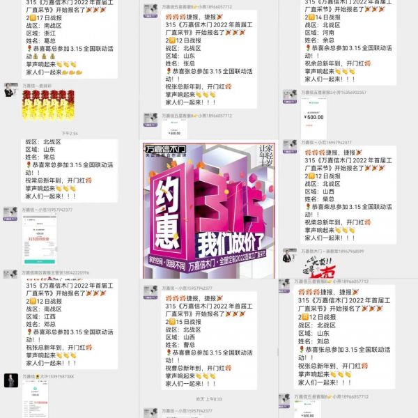 万嘉信木门不仅具有充足的生产保障,同时作为永武缙木门头部企业、雄安新区央企战略合作单位,拥有主动服务经销商的优秀客服能力,在本次活动中,万嘉信木门依旧发挥较强的客服主动服务能力,为经销商保驾护航。