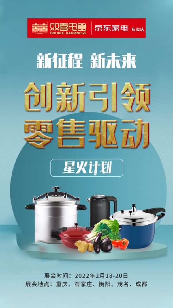 2022年2月18-20日,双喜电器联合京东家电专卖店星火计划在重庆、石家庄、衡阳、茂名、成都等地盛大开展,共同打造居家全场景购物体验,带动品牌渠道拓展,挖掘销售增量!