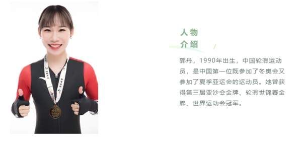 在轮滑赛场,郭丹曾是名副其实的“轮滑女王”,曾为中国轮滑首夺成年组世锦赛冠军。在2014年的轮滑世锦赛上,郭丹意外受伤,但北京申办2022年冬奥会成功给了郭丹新的启发,她将自己世界冠军、“轮滑女王”的荣誉“清空”,从零开始。