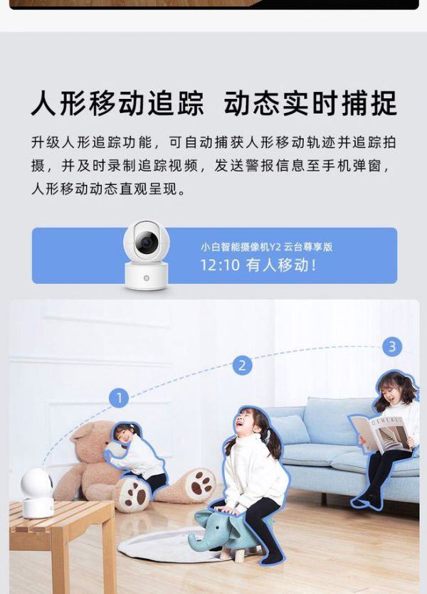 Y2云台版拥有200万清晰画质,360°全屋全景监控,在看得清晰的基础上,让用户看得更广,照顾到家的每一个角落。除此之外,还具备双向语音通话功能,可以随时随地跟孩子沟通。而且能够准确地侦测到异响与人形,并跟踪人形移动进行拍摄,这样孩子在家遇到危险也可以及时提醒你。同时基于联网功能,你只需拿出手机,即可远距离查看家中的异常情况,让看家变得更简单智能。