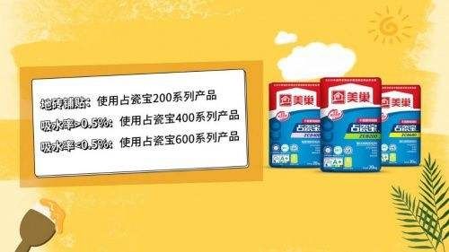 第二个优势是适用范围广。美巢占瓷宝已经针对不同吸水率、不同材质的瓷砖和不同的装修场景推出了12款产品,适用于绝大多数情况下的瓷砖装修,能够帮助业主省心、省时、省钱。