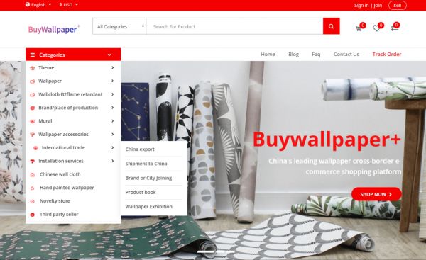 Buywallpaper+的跨境电商2.0版本,融合语言、支付、物流、税费、报关、海外多站点、批发、博客等一站式应用。