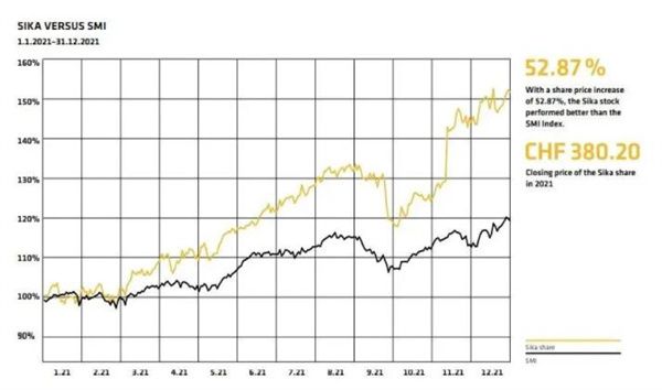 2021年,面对充满挑战的环境,西卡表现良好,再次证明了其业务模式的优势。尽管新冠疫情持续蔓延,原材料采购遭遇瓶颈,但西卡销售额仍大幅增长17.5%,达到92.523亿瑞士法郎,再创新纪录。由于公司提价并遵循严格的成本管理,营业利润(EBIT)超比例增长至23.1%,达到13.914亿瑞士法郎,再创新高。这相当于营业利润率为15.0%,而上一年为14.4%。与此相对应,净利润大幅增长27.1%,达到10.485亿瑞士法郎(上一年度为:8.251亿瑞士法郎)。