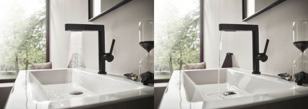 汉斯格雅Finoris抽拉式面盆龙头可拉出部分长23厘米,拥有两种出水方式。除平稳的层流出水之外,还配备了汉斯格雅标志性花洒出水科技——轻柔的PowderRain出水,适应多种清洁需求。只需轻扣按下Select按键即可实现一键切换。两种出水模式每分钟用水量都不超过五升,畅快出水同时兼顾节水需求。
