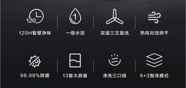 72℃持久高温煮洗功能,提供高达99.99%的除菌率,常见细菌即洗即消,守护用餐健康;独特的热风对流循环烘干系统,360°环绕烘干去除餐具水渍,干燥指数远超行业一级标准,水渍细菌不残留;120H智慧净味系统,每隔1小时自动换气,长时间储存,碗碟始终清新,安全守护餐具直至下一餐。