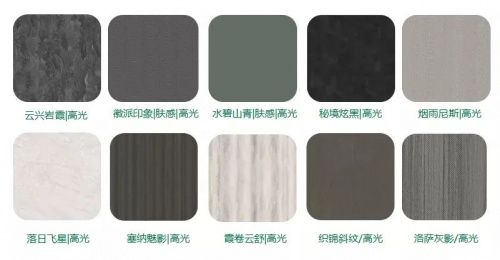 千年舟品牌的PET铂晶板包含四个系列。比如它的高光系列——拥有镜面效果,给人明亮华丽的感觉;肤感系列——哑光质地,丝滑似肌肤,拥有舒适的亲肤体验感的同时,又有高级感;压感系列—拥有很好的立体效果,满足现代消费者个性化的需求;透明系列—双贴千年舟高端花色TREEZO PRO系列纸张,在正面另压贴一层透明PET膜皮,使原本就好看的花色纹理更加凸显,拥有更好的视觉效果。