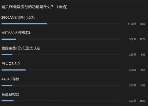 最近国内家用投影仪市场可真的是欣欣向荣,当贝和坚果两个投影打响了新品的发售礼炮。前不久小编也在部分投影论坛里看到一个投票,关于当贝新发售的投影新品最吸引你的是它的哪个特性。网友们给出的答案也很一致,对于当贝F5的亮度十分满意。