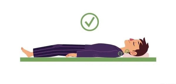 仰卧是适合绝大部分人的睡姿。仰睡能够让身体和床的接触面积达到最大,对我们的脊柱和脖子都比较好,因为仰睡时背部平直,没有弯曲或扭曲,仰睡还可以让床垫发挥它应有的功能:支撑我们的脊柱。(但老人、小下巴、舌体胖大、软腭低、小舌头粗大和肥胖的人,不建议仰睡,因为肌肉放松、舌肌松弛后坠,会导致上气道狭窄,加重打鼾或者引起打鼾。)侧 卧