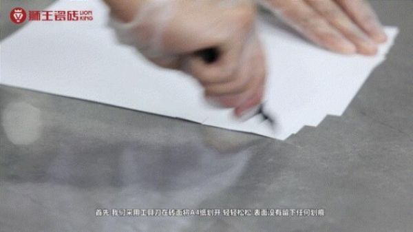 首先,我们采用工具刀在砖面将A4纸划开,表面没有留下任何划痕。