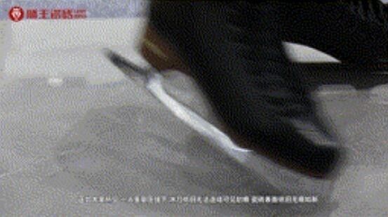 我们让工作人员穿着冰刀对砖面进行检测,如大家所见,一人重量压强下,冰刀依旧无法造成可见划痕,瓷砖表面依旧无痕如新。