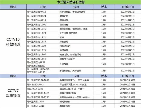 木兰清天然沸石壁材强势登陆央视 cctv-7、cctv-10双频道全年高频投放