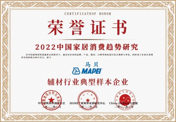 MAPEI马贝入选2022中国家居消费趋势研究辅材行业典型样本企业 ?