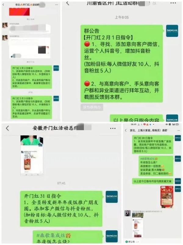 为了实现新年新目标,赢战2022,森歌早早地进入了开门红的资源累积、蓄客准备中。1月26日进行了森歌“国货直采节——全国站”开门红启动大会,在年前就开始进行了以总部统一指令为准的活动宣导。每日公司总部统一下发指令安排,帮助终端门店进行客户关系维护,陌生客户增粉,个人平台产品及活动宣传。