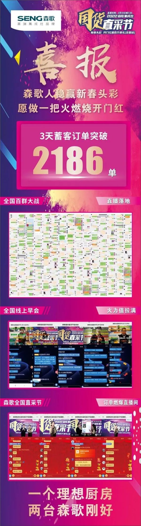 通过前期的铺垫加粉,1+3的紧张拉群维护。2月10日,森歌“国货直采节——全国站”在全国社群统一直播落地,让这次开门红活动第一阶段落地交出了满意的答卷:第一阶段蓄水三天,收获几千订单!其中,更是有很多门店真正实现了自己的“开门红”,璧山店、贵阳店、介休店、安吉店、赤峰店…都有出彩的表现。