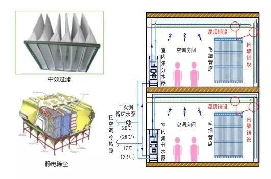 新风过滤采用了金茂健科的置换新风系统,机组采用显热回收,热回收效率不小于60%,PM2.5去除率不小于90%,有效地保证了室内健康的空气环境。高效能源系统采用区域地源热泵或高效空气源热泵,为建筑提供冷热源,末端采用金茂健科的毛细辐射空调系统,衡温无吹风感,在满足冷热舒适性的基础上,最大限度地通过提升系统能效降低运营能耗。